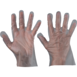 Jednorázové nepudrované rukavice z termoplastického elastomeru (TPE) vhodné pro krátkodobý styk s potravinami.