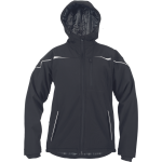 • winter softshell jacket with insulated hood and zip fastener • two zipped side pockets • one zipped left chest pocket • one inside chest pocket • elastic sleeves cuffs • inside waist snow belt • underarm zipped ventilation • reflective details and piping