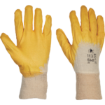 Šité rukavice z bavlny, máčané v nitrile, s pružným nápletom na zápästí.