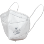 Skladaný FFP2 respirátor s gumičkami s uchytením za uši. Všitý mäkký kovový nosník.