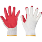 Pletené rukavice zo zmesi polyester/bavlna, impregnované v latexe, s extra vrstvou latexu v dlani a na prstoch.