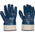 Šité rukavice z bavlny, máčané v nitrile, s pevnou manžetou.