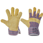 Rukavice z hovädzej štiepenky v dlani s podšívkou, chrbát a manžeta z bavlnenej tkaniny.