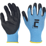 • príjemné a ľahké pletené bezšvové HPPE rukavice máčané v PU