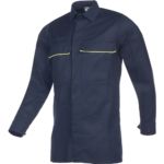 pánska košeľa s ochranou proti tepelnému účinku elektrického oblúka; antistatická; zapínanie na cvoky pod krycou légou; ľahký a priedušný materiál s výbornou reguláciou odvodu vlhkosti; 2 náprsné vrecká s chlopňou, zapínaním na cvoky a kontrastným lemovaním; spodný obvod rukávov nastaviteľný pomocou cvokov.
