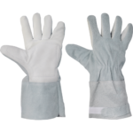 Celokožené antivibračné rukavice z mäkkej lícovej usne a hovädzej štiepenky s voľnou manžetou a bavlnenou podšívkou.