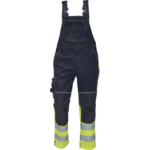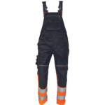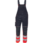 kvalitné pánske pracovné nohavice s náprsenkou v kombinácii s HI-VIS materiálom v spodnej časti nohavíc a 2 našitými reflexnými pruhmi; elastické traky a pás; 6 funkčných vreciek; 600D Oxford zosilnená oblasť kolien s možnosťou vkladania kolenných výstuh; záložka na nohavici umožňujúca predĺženie dĺžky až o 5 cm; dekoratívne prešitie a kontrastné prvky v HI-VIS farbe.