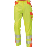 • pánske nohavice v atraktívnom prevedení kombinácie 2 hi-vis farieb s reflexnými natlačenými pruhmi • 2 hlboké predné vrecká • 1 multifunkčné vrecko po stranách nohavice • 2 zadné vrecká s príklopkou • elastický pás a pútko na náradie