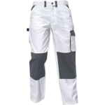 Pánske pracovné nohavice do pása, s hornými prednými vreckami v džínsovom štýle, 1 bočné skladané vrecko s príklopkou na suchý zips, 1 bočné vrecko s pútkom na náradie, 2 zadné vrecká, z toho jedno s príklopkou na suchý zips, nastaviteľná dĺžka nohavíc, elastický pás, spevnenie švov trojitým prešitím, znásobené prešitie v namáhaných miestach.