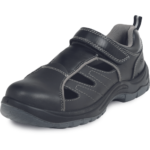 Klasické bezpečnostné sandále s oceľovou tužinkou v špičke, ktorá chráni pred stlačením silou do 15 kN alebo pádom bremena o váhe do 20 kg z výšky 1 m. Antistatická robustná podošva vyrobená z dvojhustotného polyuretánu garantuje nie len komfort, ale aj bezpečie vďaka oceľovej stielke proti prepichnutiu a proti vlastnostiam podrážky, ktorá je navyše rezistentná voči olejom a oderu. Zvršok obuvi je vyrobený z prírodnej štiepenkovej kože a vnútorná podšívka z priedušného polyesteru. Zapínanie pomocou suchého zipsu zaručuje rýchle a pohodlné obúvanie. Reflexné prvky garantujú zvýšenú viditeľnosť užívateľa. Tento model vďaka skvelému pomeru cena/kvalita spracovaniu dokáže uspokojiť požiadavky všetkých zákazníkov.