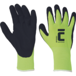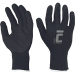 bezšvové polyesterové rukavice s máčaním v mikroporéznom nitrile; vynikajúca ochrana voči oderu, výdrž cez 15.000 cyklov; pevný úchop aj v mokrom a olejnatom prostredí; hustota úpletu 13 GG