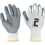 pletené bezšvové polyesterové rukavice máčané v nitrile; jedinečný úchop v suchom prostredí; hustota úpletu 13 GG