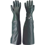 Rukavice šité z bavlneného úpletu, máčané v PVC s obsahom nitrilu, s posypom granulovaného PVC v dlani, odolné mechanickým a c hemickým rizikám, v celkovej dĺžke 65 cm (s návlekom na paži).