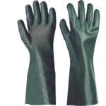 Rukavice šité z bavlneného úpletu, máčané v PVC s obsahom nitrilu, s posypom granulovaného PVC v dlani, odolné mechanickým a chemickým rizikám, v celkovej dĺžke 45 cm