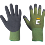 Bezšvové pletené rukavice, polomáčané v čiernom latexe, s bambusovým vláknom a zvrásnením na prstoch pre lepšie uchopenie. Rukavica vzhľadom na použitý materiál odvádza vlhkosť.