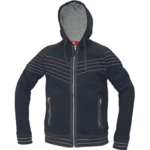Pánska mikina na zips s kapucňou zo zmesového počesaného materiálu, 2 bočné vrecká na zips, léga z kontrastného materiálu okolo zipsov, dvojitá kapucňa s kontrastnou farbou podšívky, pevné úpletové patenty na rukávoch a v spodnom obvode, dekoratívne šnúrky v kapucni v kontrastnej farbe, potlač na hrudi a rukávoch, výšivka Assent na rukáve.