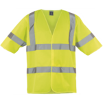 HI-VIS vesta s krátkym rukávom; zapínanie na suchý zips; šité reflexné pruhy. Poznámka: pre veľkosť M platí certifikácia EN ISO 20471:2013+A1:2016 > Trieda 2, pre ostatné veľkosti Trieda 3